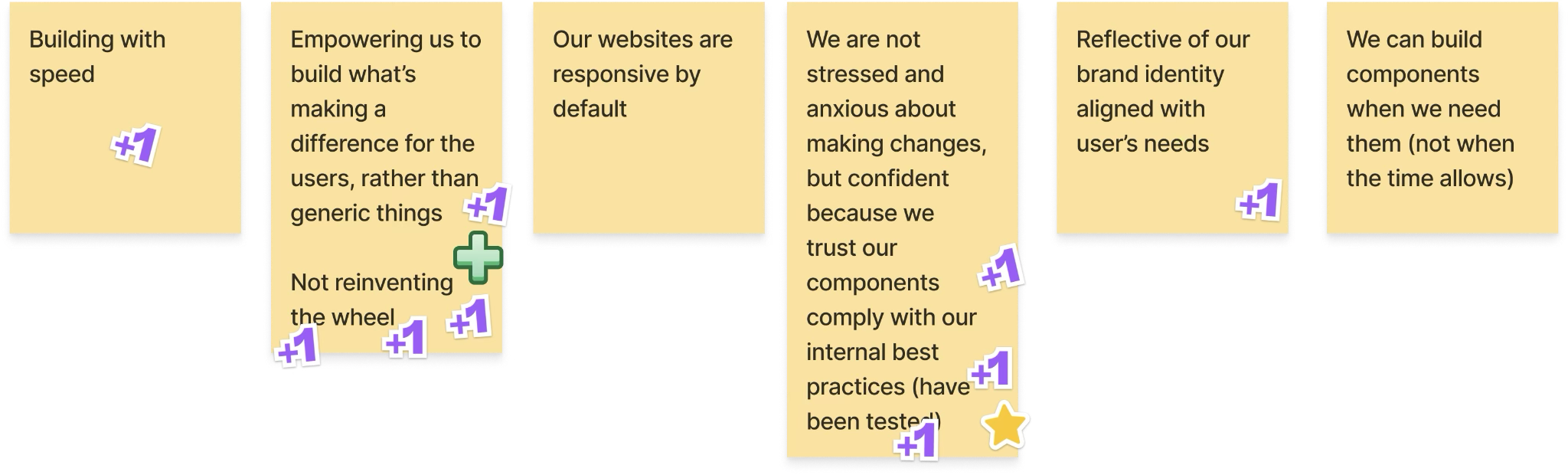 For example, I led a workshop with all the engineers, designers, and product leaders, where we identified the key themes for what we wanted our Design System to achieve.